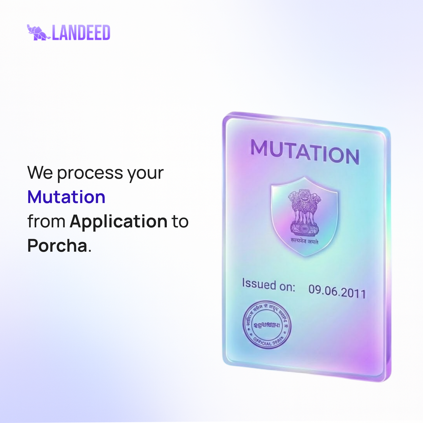 BLRO Mutation — Rural and semi-urban land outside municipal limits. Updates your Porcha through the Block Land & Land Reforms Office.